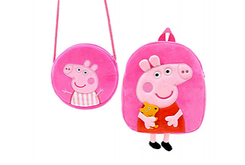 新品長億英國正版小豬佩奇毛絨 單肩斜挎錢包3歲兒童節日大書包小學生